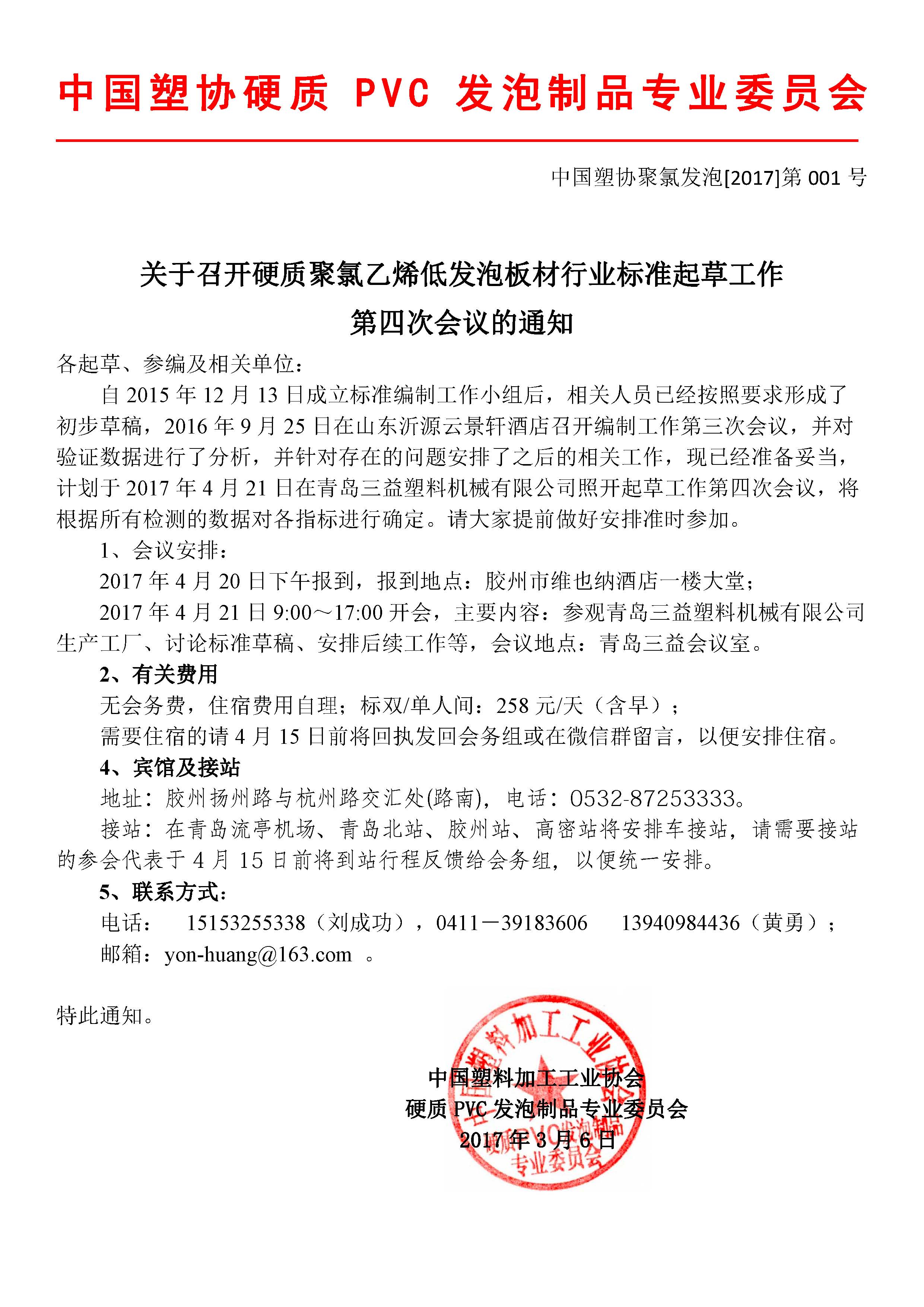 硬质聚氯乙烯低发泡板材行业标准修订工作会第四次会议将在青岛召开